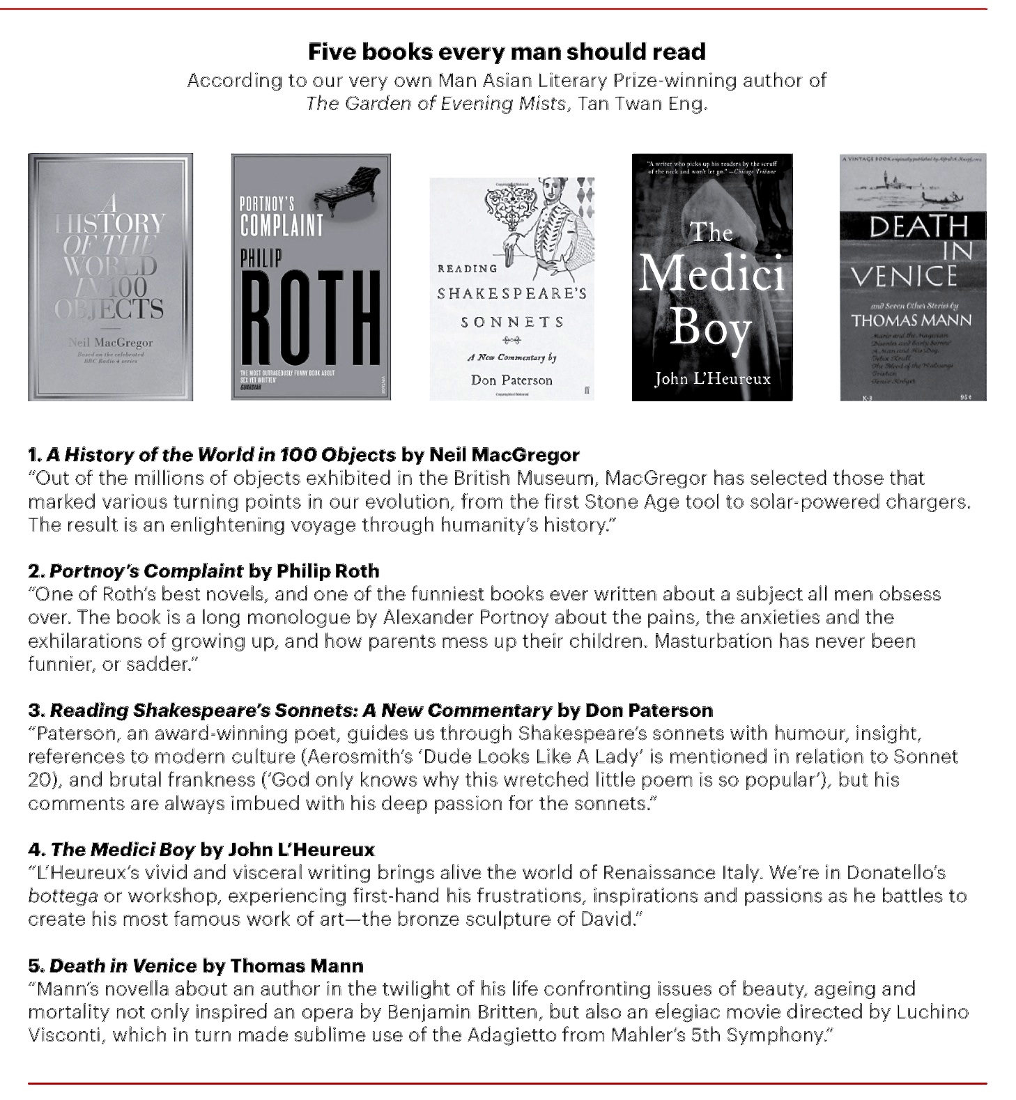 Five books every man should read according to our very own, Tan Twan Eng August 4, 2014NewsKate Nash Esquire Magazine August 2014